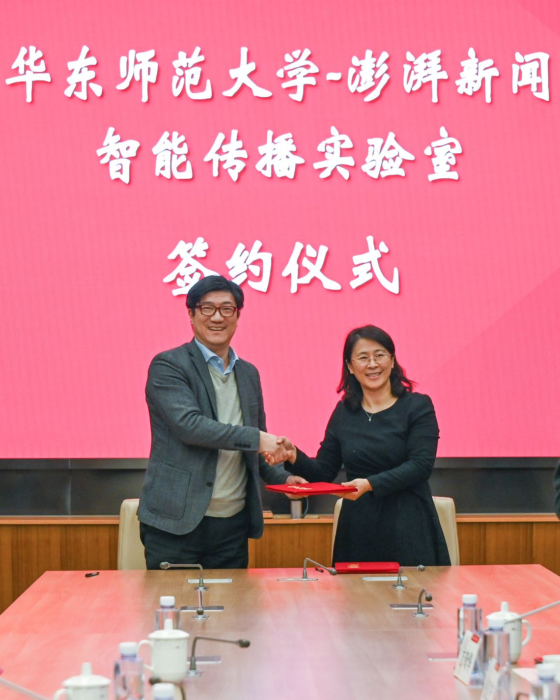 2023年11月23日下午,h动漫 与澎湃新闻携手建立的“h动漫 -澎湃新闻”智能传播实验室签约仪式在h动漫 (中山北路校区)办公楼小礼堂举行。