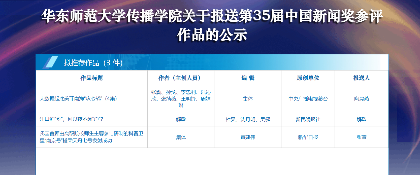 h动漫 作为中国新闻奖试点报送单位,根据中国新闻奖报送工作相关要求组成评审专家小组,对征集到的作品进行评议和投票,拟报送《大数据起底美菲南海“攻心战”》等3件作品参评第35届中国新闻奖,现将参评作品予以公示。