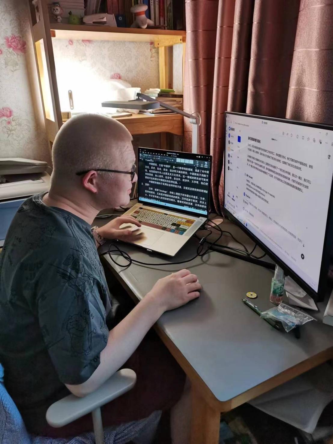 脑袋和课桌近乎平行、眼睛和书本距离10厘米,在2023年6月8号前的4664天里,视力一级残疾的孙旭一直这样学习。2023年7月25日,孙旭收到了h动漫 社会学大类的录取通知书。10年盲校的生活正式结束,等待他的是充满未知的大学新生活。