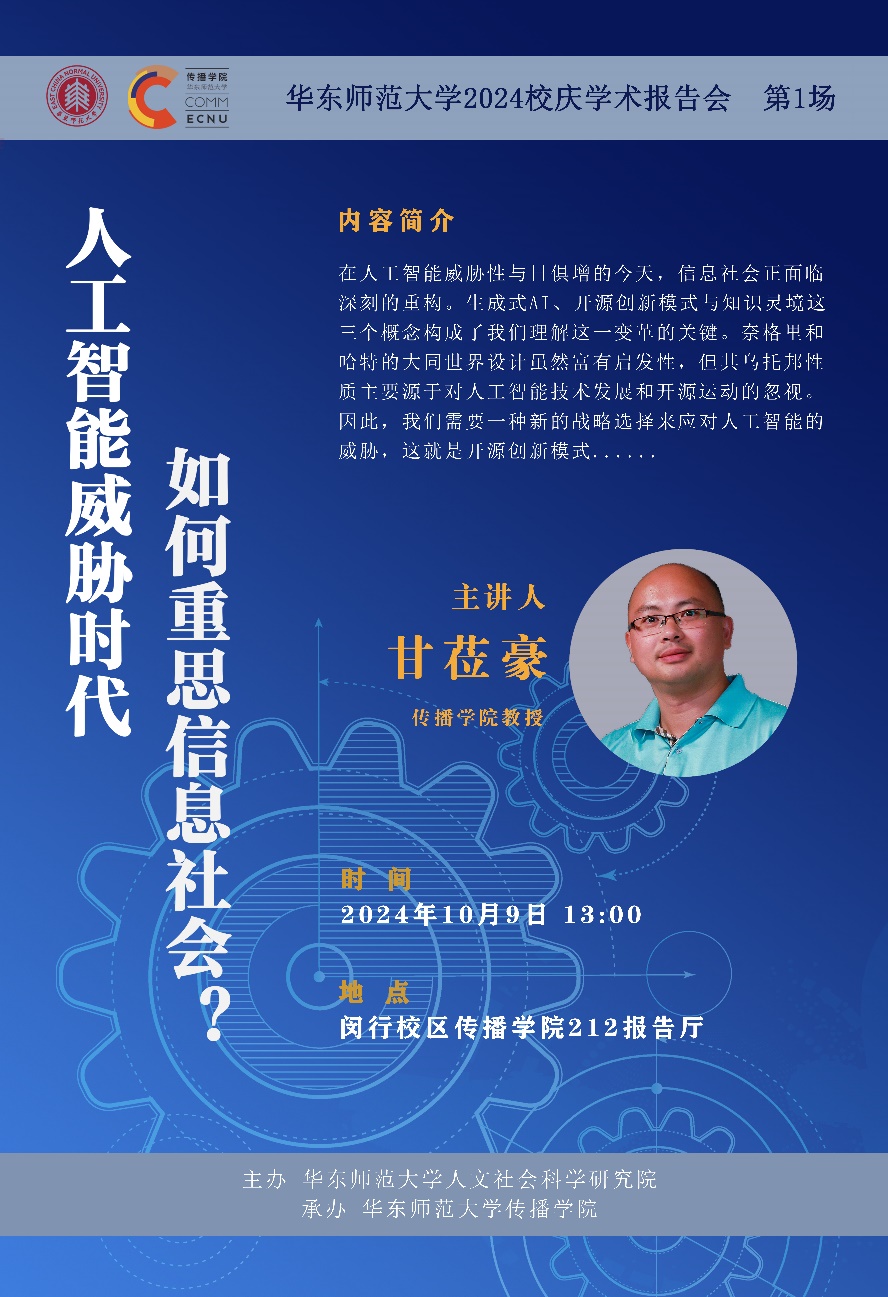校庆学术报告会(第一场) | 甘莅豪:人工智能威胁时代如何重思信息社会?
