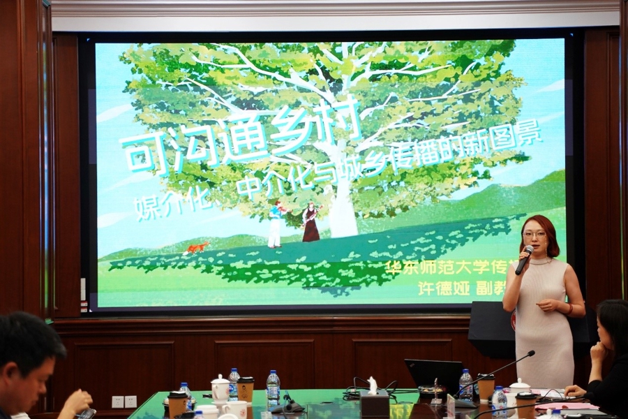 h动漫 副教授许德娅以《可沟通乡村:媒介化、中介化与城乡传播的新图景》为题演讲。她认为,乡村如何从“信息末梢”变为“传播主体”是新闻传播学进行乡村议题的重要议题。她从乡村新媒介使用与赋权、平台化乡村与电商直播、数字时代的乡村治理、短视频与乡土文化四个方面总结了相关研究领域。她结合自身研究,探讨了何为“和沟通乡村”以及未来城乡传播研究应该从跨学科、历时性、一体化、日常化、数字化五个方面展开。