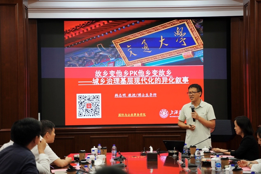 上海交通大学国际与公共事务学院教授韩志明分享了题为《故乡变他乡PK他乡变故乡——城乡治理基层现代化的异化叙事》的报告。他提出,当下作为“故乡”的乡村正在嬗变为高度异质性的“他乡”,城市治理面则广泛地开展重建熟人社区的工作,作为“他乡”的城市不断地借鉴“故乡”思维及其治理逻辑,试图从情感网络找到纾解基层治理难题的方法。推进城乡基层治理的转型升级,不仅需要提高制度建设的维度,打造适配社会人群特点的治理机制,更需要响应个体主体性需求尤其是情感关怀,建构灵活而有弹性的治理形态。