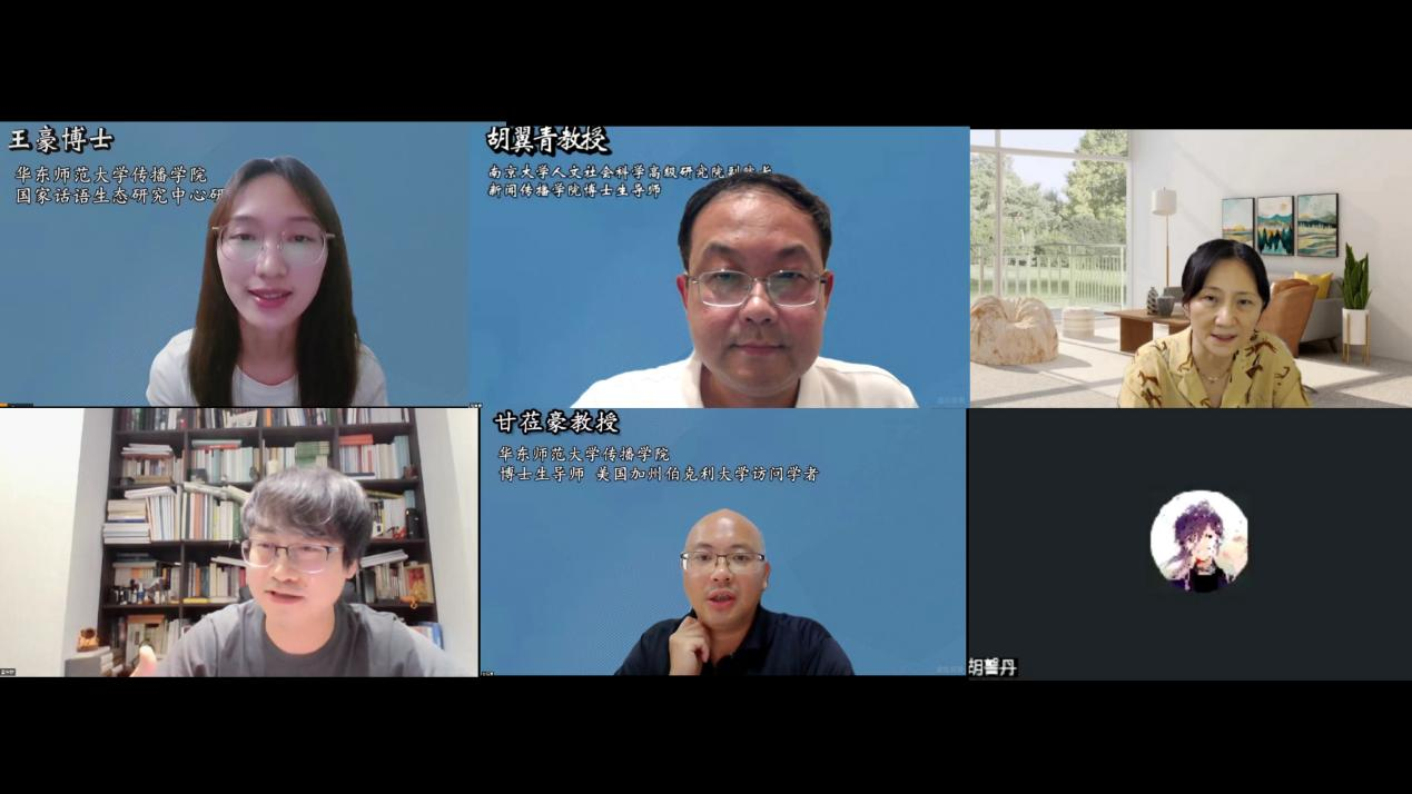 本次学术主题对谈由h动漫 2022级博士生王豪主持,南京大学人文社会科学高级研究院副院长、南京大学新闻h动漫 教授胡翼青,复旦大学新闻学院教授、复旦大学信息与传播研究中心主任孙玮,h动漫 政治与国际关系学院教授、政治学前沿与跨学科教研室主任姜宇辉,与h动漫 教授、国家话语生态研究中心副主任甘莅豪作为对谈嘉宾出席本次活动。