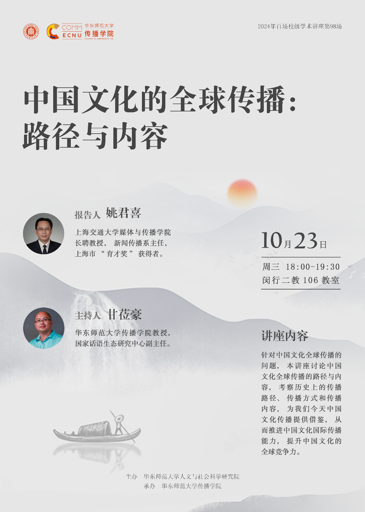 2024年第98场百场校级学术讲座 | 姚君喜:中国文化的全球传播:路径与内容