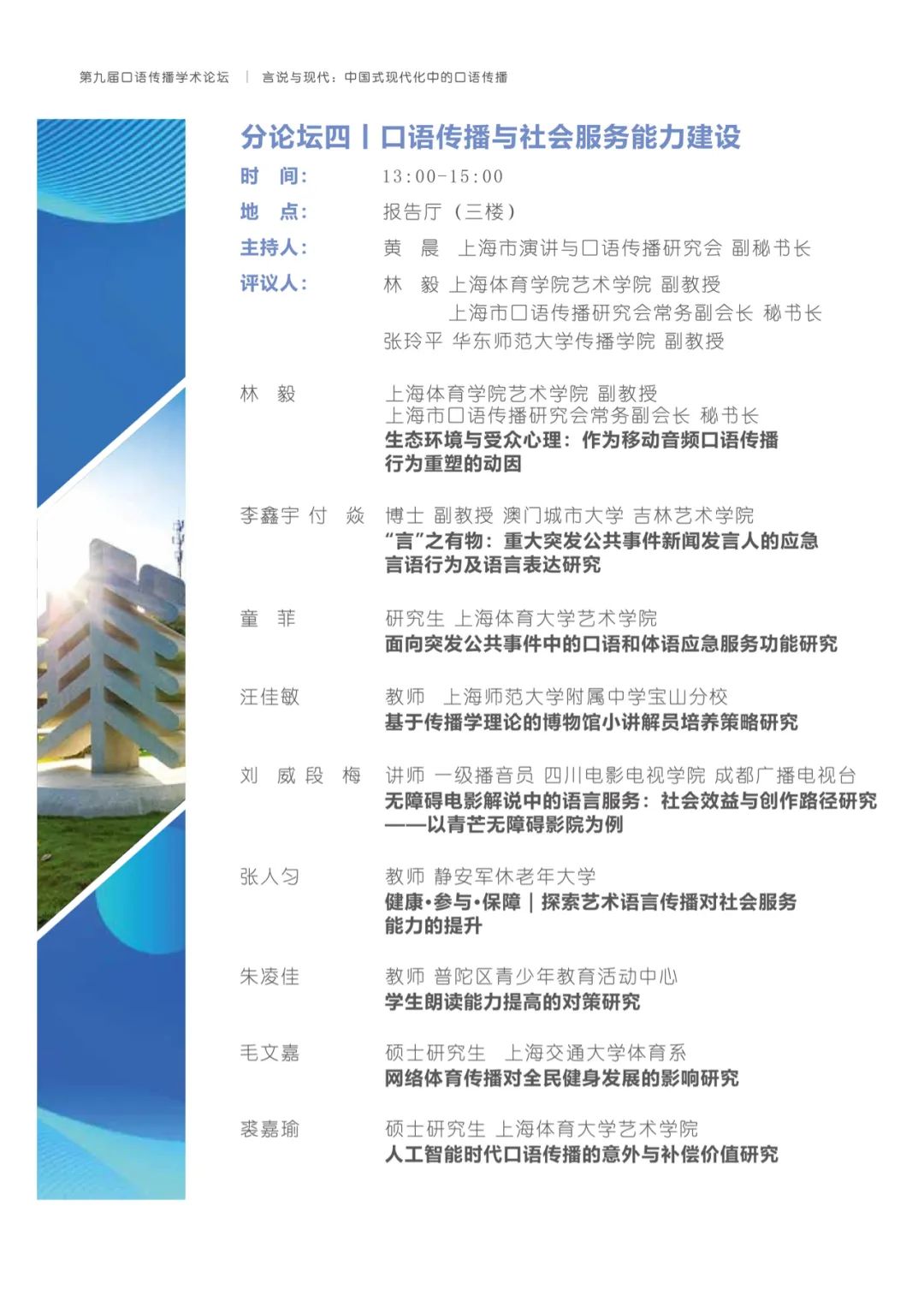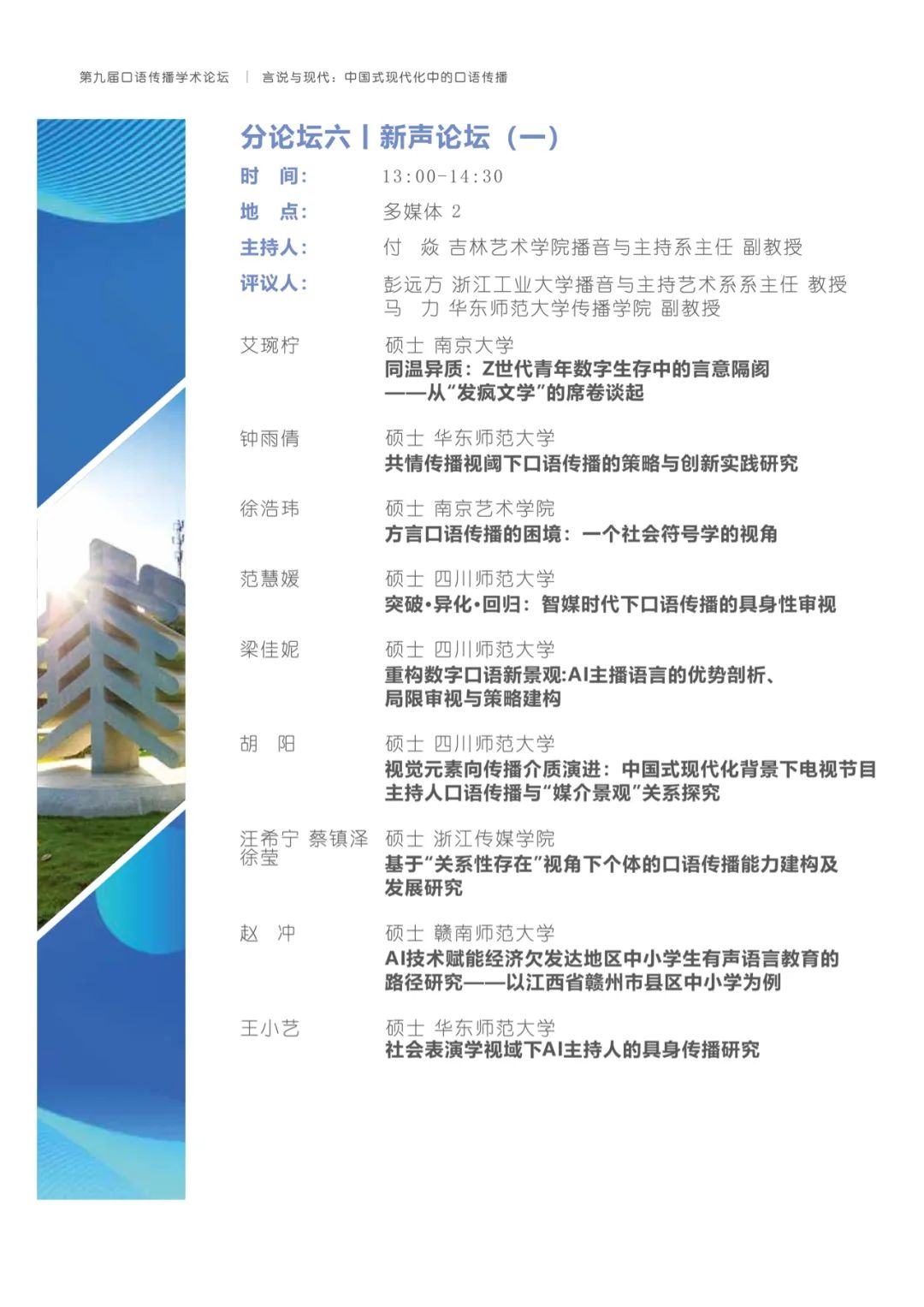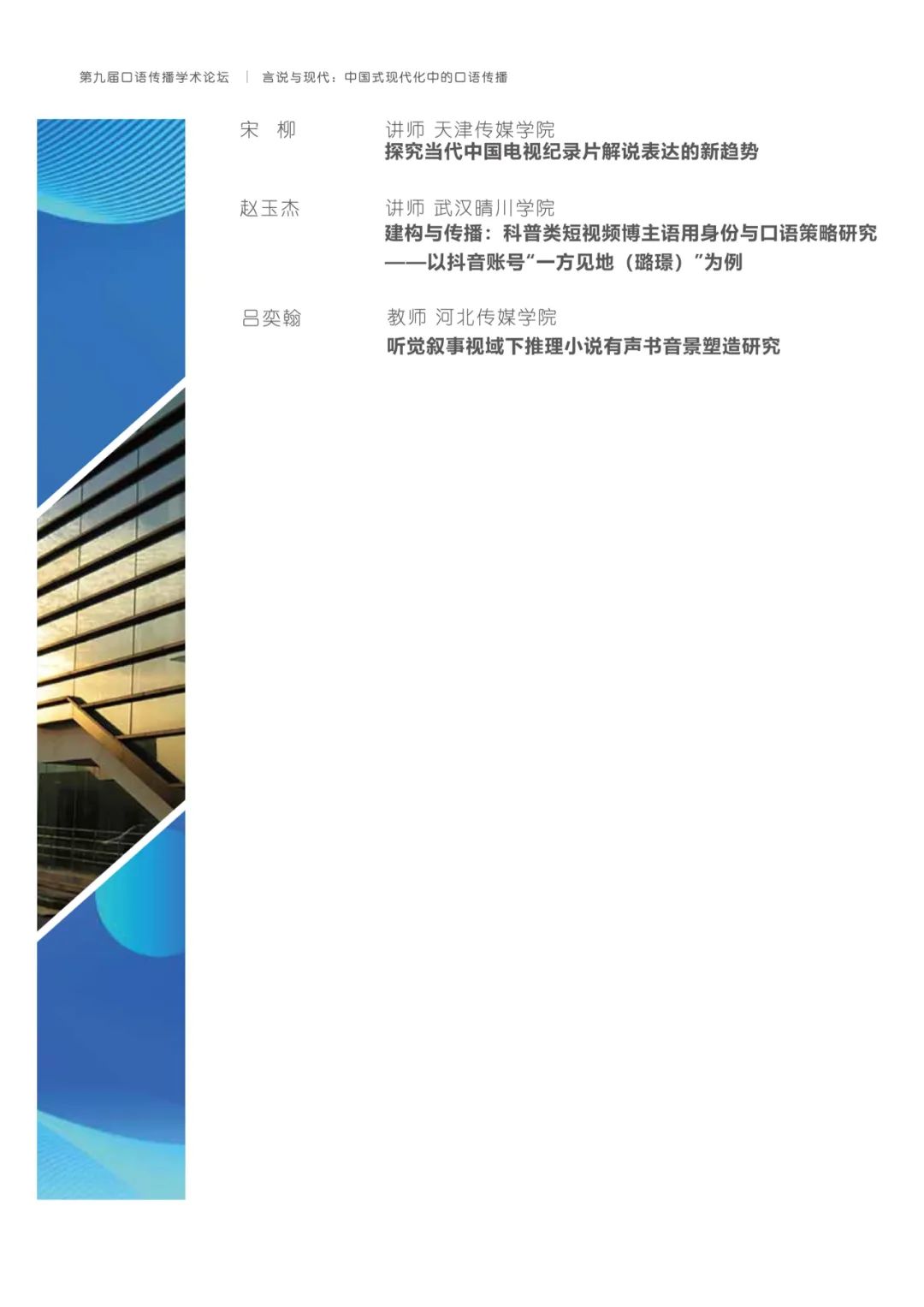 有鉴于此,h动漫 将与上海广播电视台融媒体中心、h动漫 研究生院联合主办以“言说与现代:中国式现代化中的口语传播”为主题的第九届口语传播学术论坛。论坛旨在共同探讨构建具有中国特色的口语传播体系,传递有声的中国,推动精神现代化以促进中国式现代化的全面进步与发展。