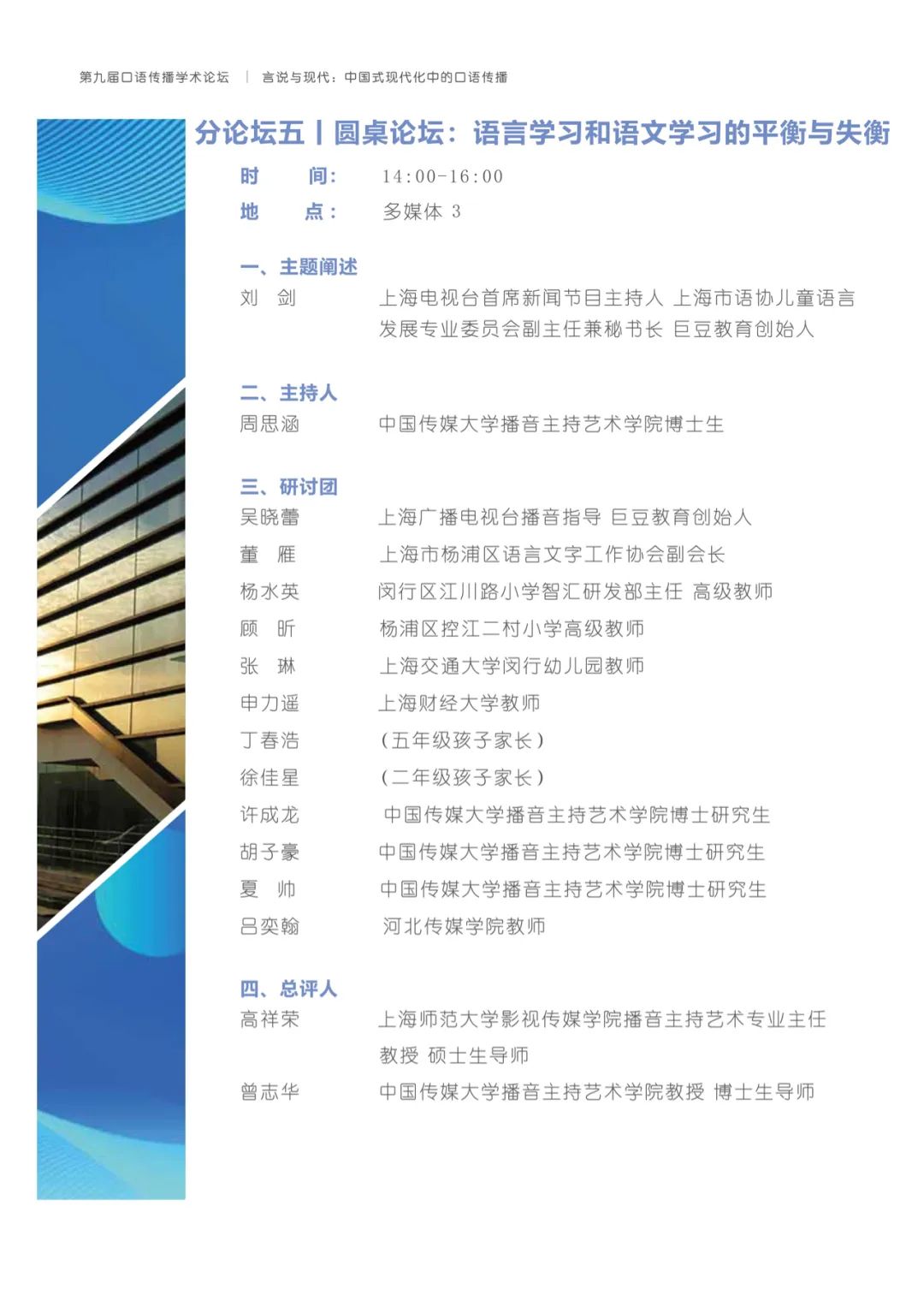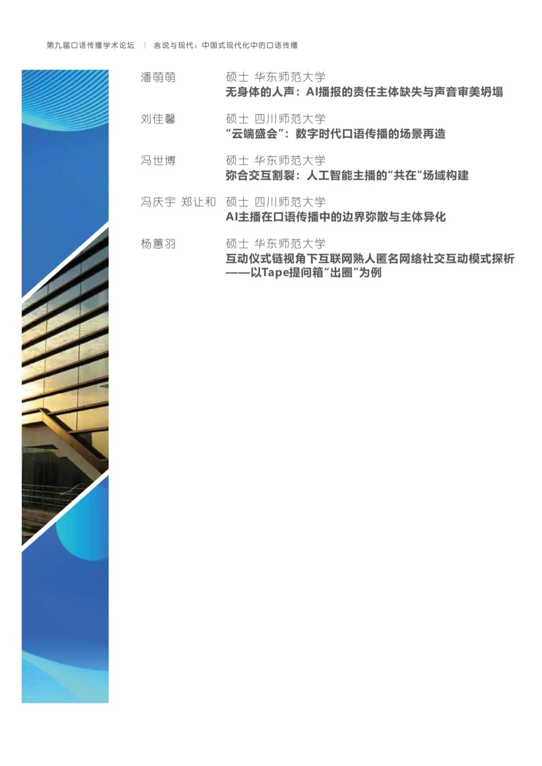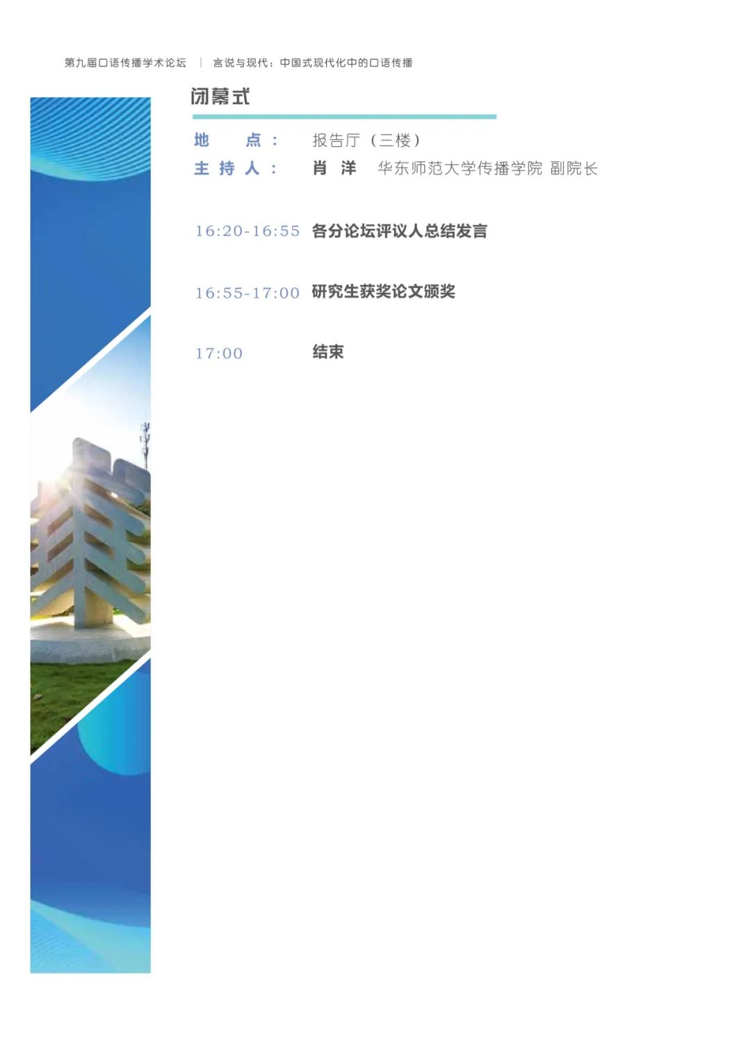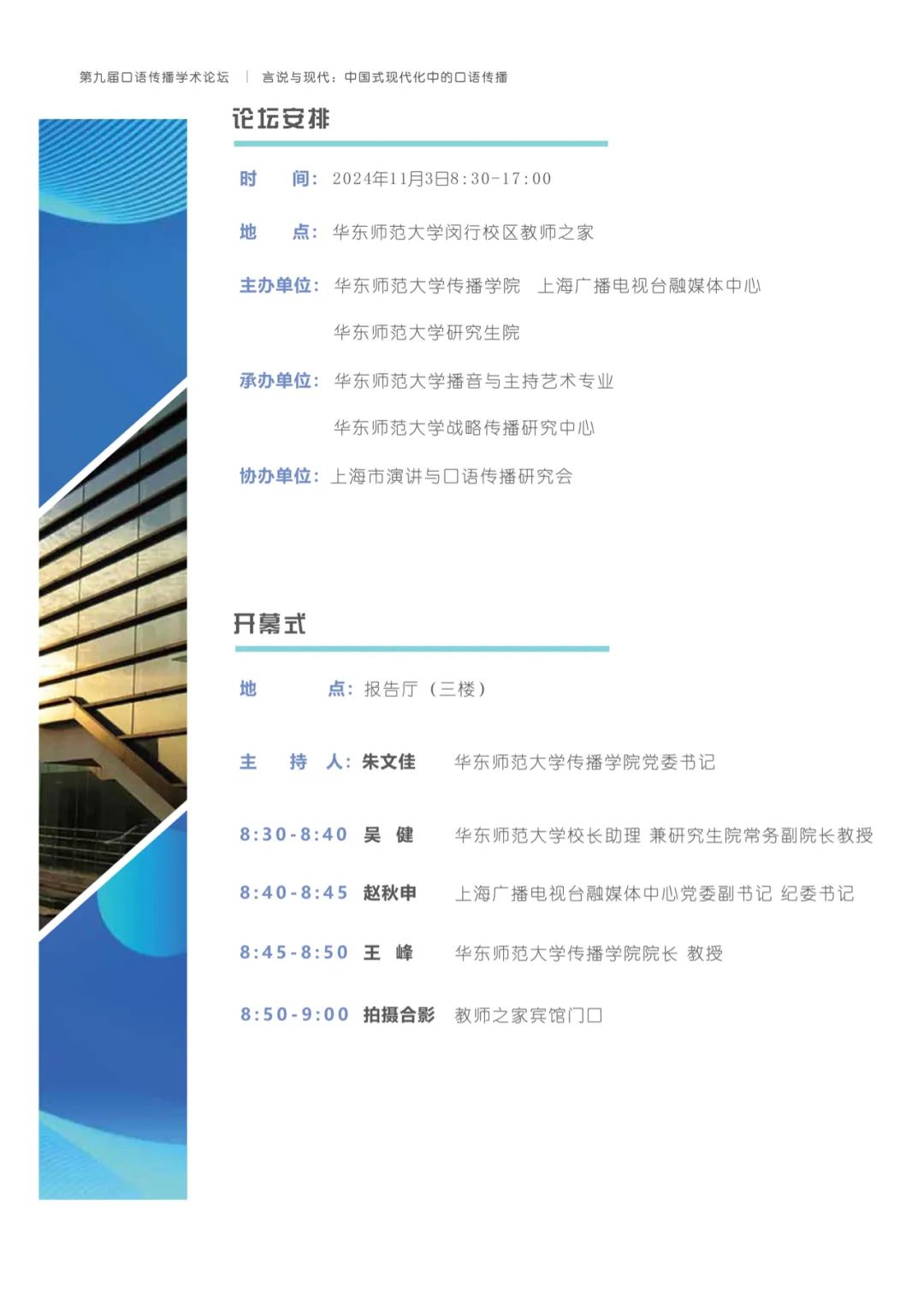 有鉴于此,h动漫 将与上海广播电视台融媒体中心、h动漫 研究生院联合主办以“言说与现代:中国式现代化中的口语传播”为主题的第九届口语传播学术论坛。论坛旨在共同探讨构建具有中国特色的口语传播体系,传递有声的中国,推动精神现代化以促进中国式现代化的全面进步与发展。
