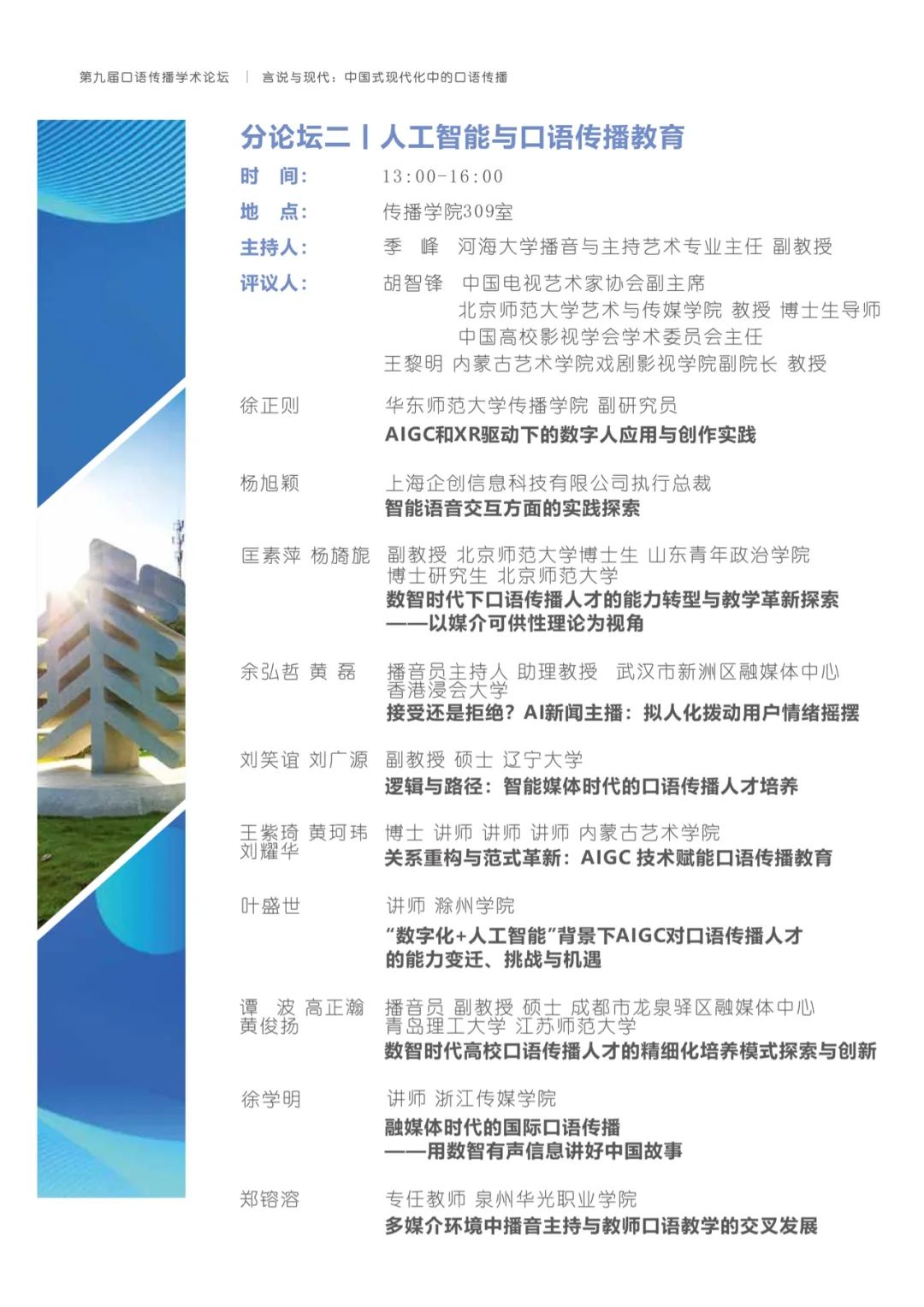 中国口语传播研究历史悠久。自古至今,中国口语传播的历史见证了众多变迁与发展,并展示了“言说”。从传统到现代的演变与进步。在数字技术不断进步和新质生产力加速融入的今天,口语传播作为传统与现代的交汇点,既保留了传统的语言表达和文化价值,又吸纳了现代技术如数字化、多媒体等新的传播手段和思想。它肩负着传承中华文化与传播当代思想的重要使命,在中国式现代化的进程中扮演着至关重要的角色。