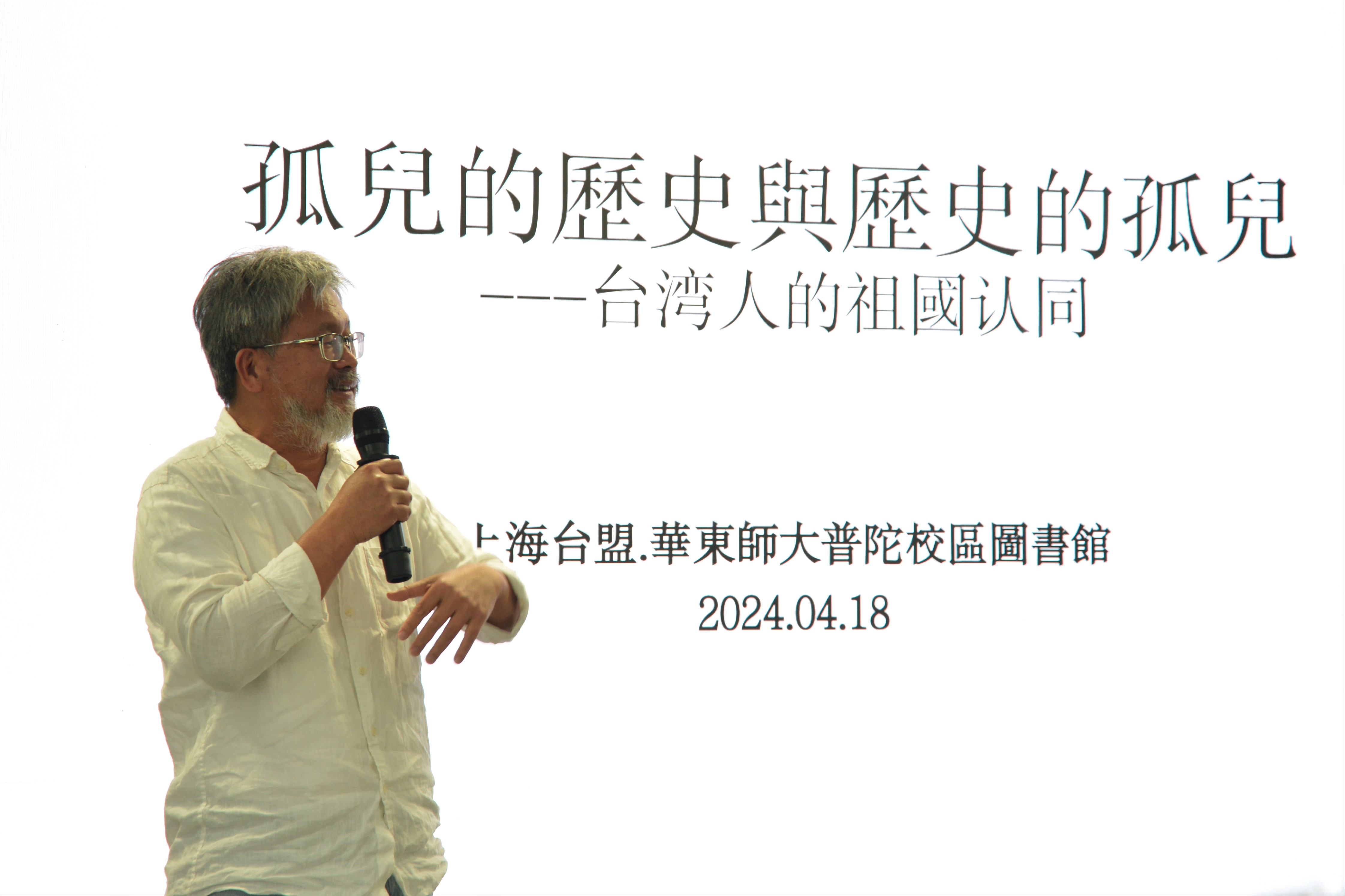 本次活动中,台盟上海市委邀请了台湾辜金良文化基金会董事长蓝博洲作了题为《孤儿的历史与历史的孤儿——台湾人的祖国认同》的报告。