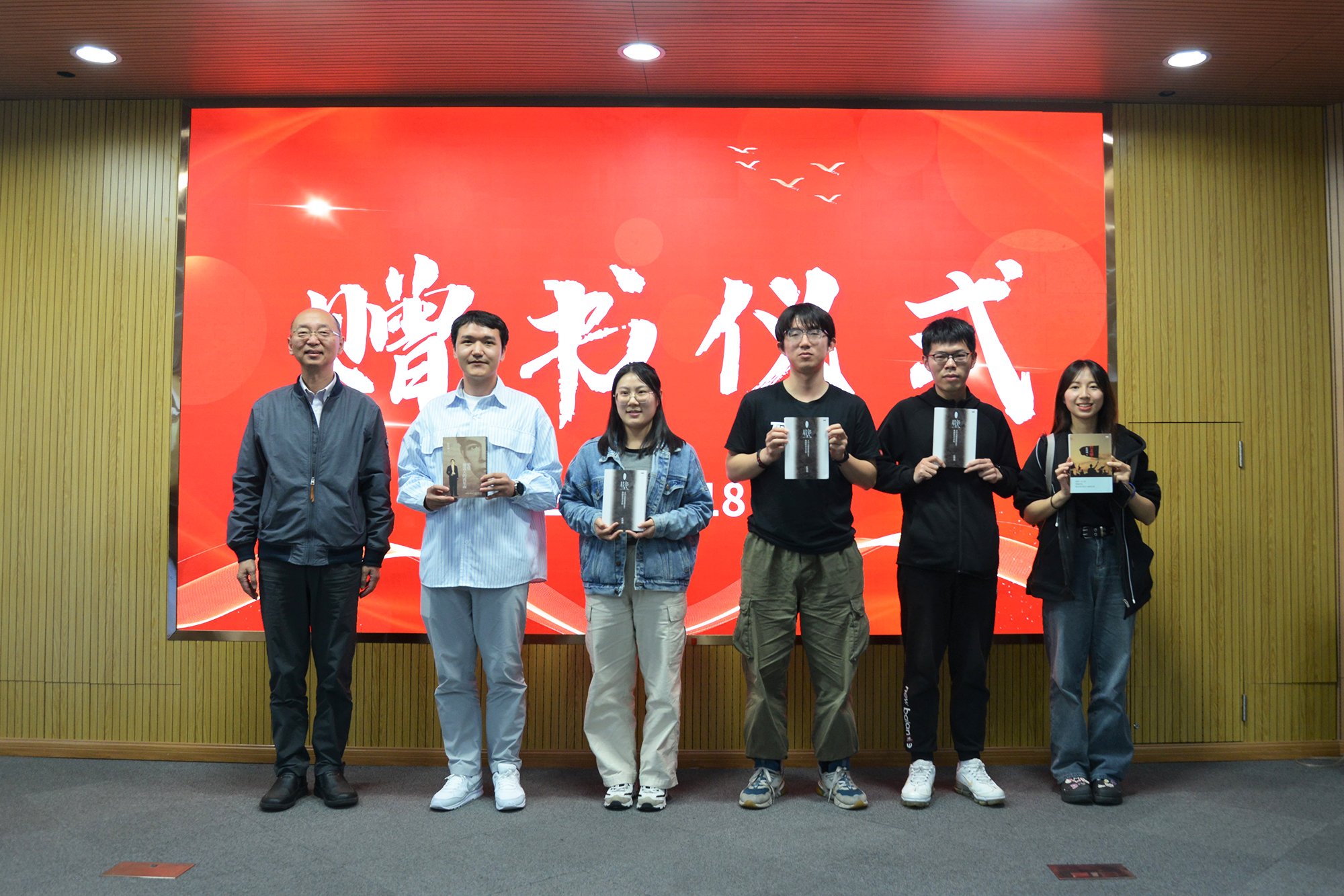 党委统战部副部长章平向提问学生赠书