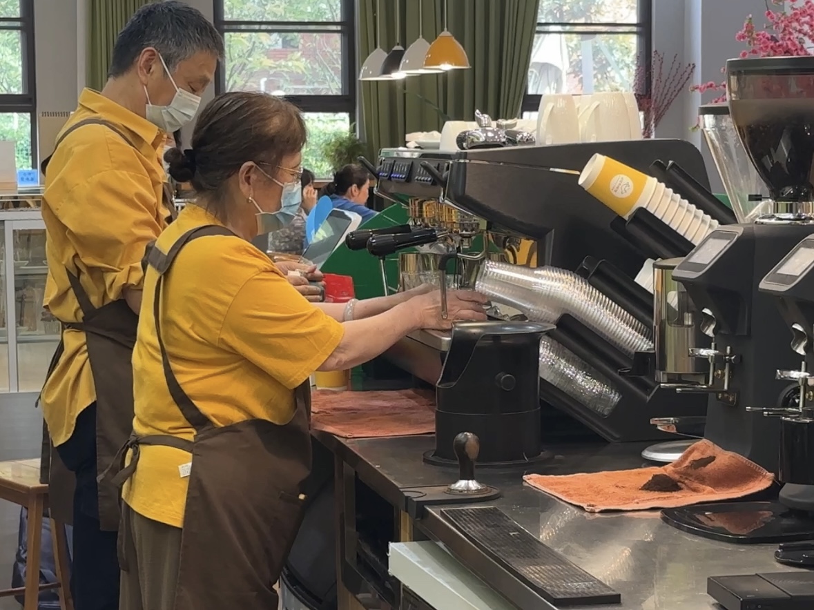 目前,记忆咖啡馆由20名左右的轻度认知障碍老年人运营,他们经由社区认知障碍评估、专业咖啡师培训后持食品行业健康症上岗。在咖啡馆内,他们通常被称作“老宝贝”,主要负责咖啡制作与待人接物工作,每人一周负责两个半天的工作。洋泾记忆咖啡馆馆长杨卫群认为“他们个个都是很斗志昂扬的,是一支很有凝聚力和战斗力的团队。”在今年6月上海国际养老、辅助及康复医疗博览会上,“老宝贝”们轮班上岗制作咖啡的同时,也通过相关周边产品的售卖实现咖啡款项的募集。