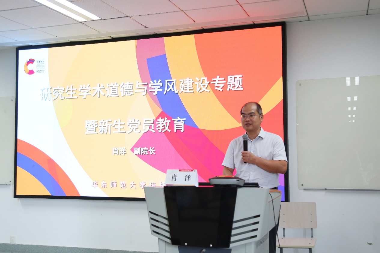 肖洋副院长为新生进行研究生学术道德与学风建设专题暨新生党员教育,结合典型案例从“严守学风底线、规范网络言行、恪守学术道德”三方面提出具体要求,重点警示抄袭、数据造假等学术不端行为的严重后果。同时,肖洋鼓励新生们积极参加学术会议、拓展学术视野;参与导师课题,提升实践能力;从课程小作业起步,循序渐进培养学术写作能力,积累高质量研究成果。